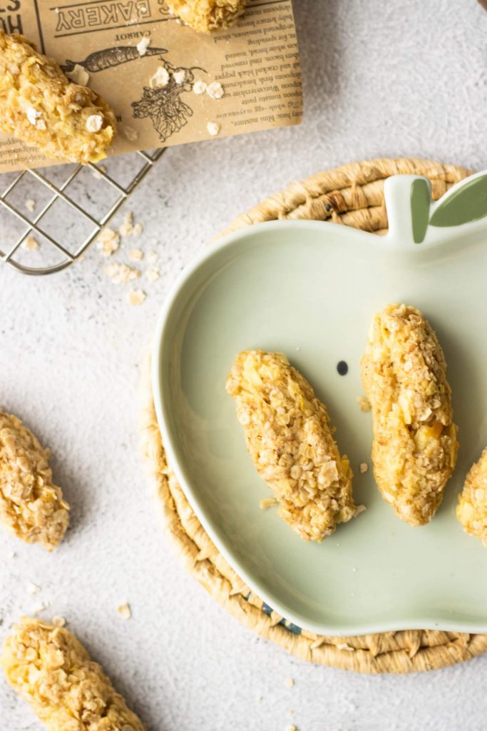 Die Apfel-Stangen backen 10–12 Minuten. Danach etwas kühlen lassen, um festzubleiben.