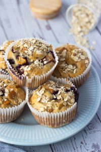 Wenn du gerade keine Blaubeeren hast, kannst du die Blaubeeren Muffins auch problemlos mit Himbeeren zubereiten. Die Blaubeeren Muffins sich bis zu drei Tage im Kühlschrank, wenn du sie luftdicht verpackst. Vor dem Verzehr solltest du sie etwa eine Stunde bei Raumtemperatur stehen lassen, damit sie wieder etwas weicher werden.