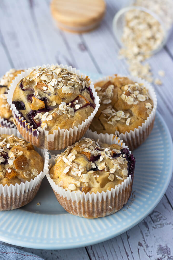 Die natürliche Süße dieses Blaubeeren Muffinns kommt von den sehr reifen Birnen. Für diese Blaubeeren Muffins habe ich die Sorte Williams Christ Birnen verwendet, aber du kannst natürlich auch andere Sorten wie Abate ausprobieren. Solltest du keine Birnen zu Hause haben, probiere es doch einfach mit Äpfeln – das schmeckt bestimmt auch super lecker! Wichtig ist nur, dass die Früchte richtig reif sind, damit sie genügend Süße abgeben.