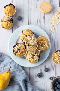 Heute möchte ich dir ein wunderbares Blaubeeren Muffins mit Birnen vorstellen, das nicht nur beim Frühstück super ankommt, sondern auch als Snack für zwischendurch, für die Brotdose oder sogar bei Kindergeburtstagen bestens geeignet ist. Diese Blaubeeren Muffins Rezept mit Birnen sind ideal für kleine Kinderhände und perfekt für breifrei (Baby Led Weaning) Babys, die um den 9. Monat herum schon sicher kauen können und erste Erfahrungen mit fester Nahrung gemacht haben.