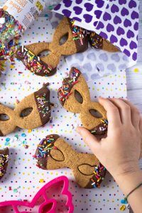 Heute zeige ich euch ein tolles Karneval-Rezept für süße Karnevalsmasken für Kinder! Diese leckere Karnevals-Kekse sind nicht nur ein Hingucker, sondern auch perfekt, um sie gemeinsam mit Kindern zu backen und zu verzieren. Meine Tochter hatte richtig Spaß daran die Karnevalskekse auszustechen und zu verzieren.