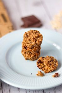 Für die Haferkekse habe ich kleine Schokostücke verwendet, und zwar die Dattel-Schokolade von Makri. Seit September arbeite ich mit Makri zusammen und teste mich durch ihre köstlichen Bio-Schokoladen, die nur mit Datteln gesüßt sind. Schau gerne mal bei Makri vorbei – die Schokolade ist wirklich lecker, vor allem die Zartbittersorte. Falls du auch neugierig auf Dattelschokolade bist, habe ich einen Rabattcode für dich: