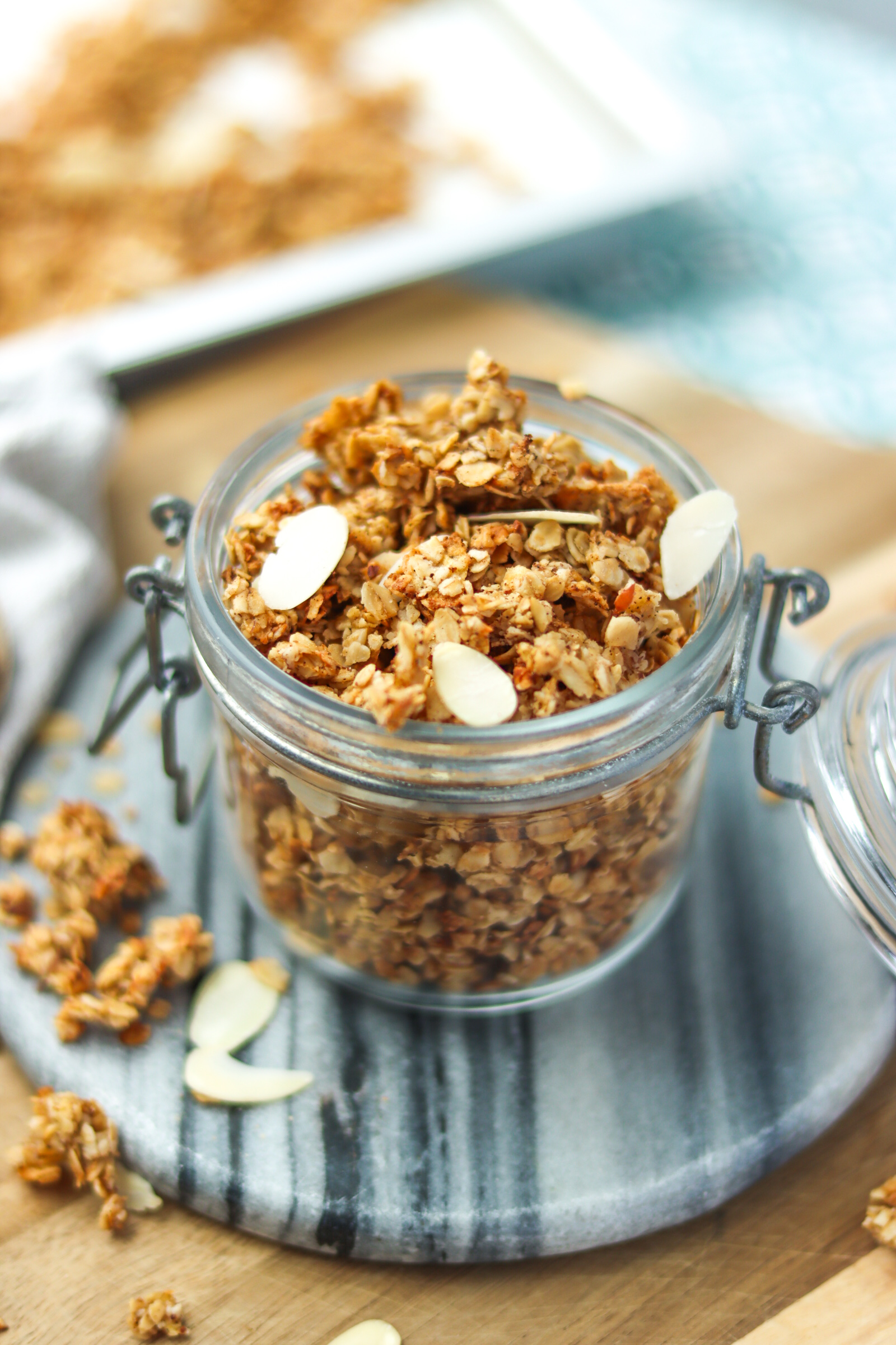 Ich habe dieses gesunde Apfel-Granola auch schon verschenkt, zum Beispiel zu Weihnachten, abgefüllt in schöne Glasdosen. Selbstgemachte Kleinigkeiten aus der Küche sind für mich immer etwas ganz Besonderes.