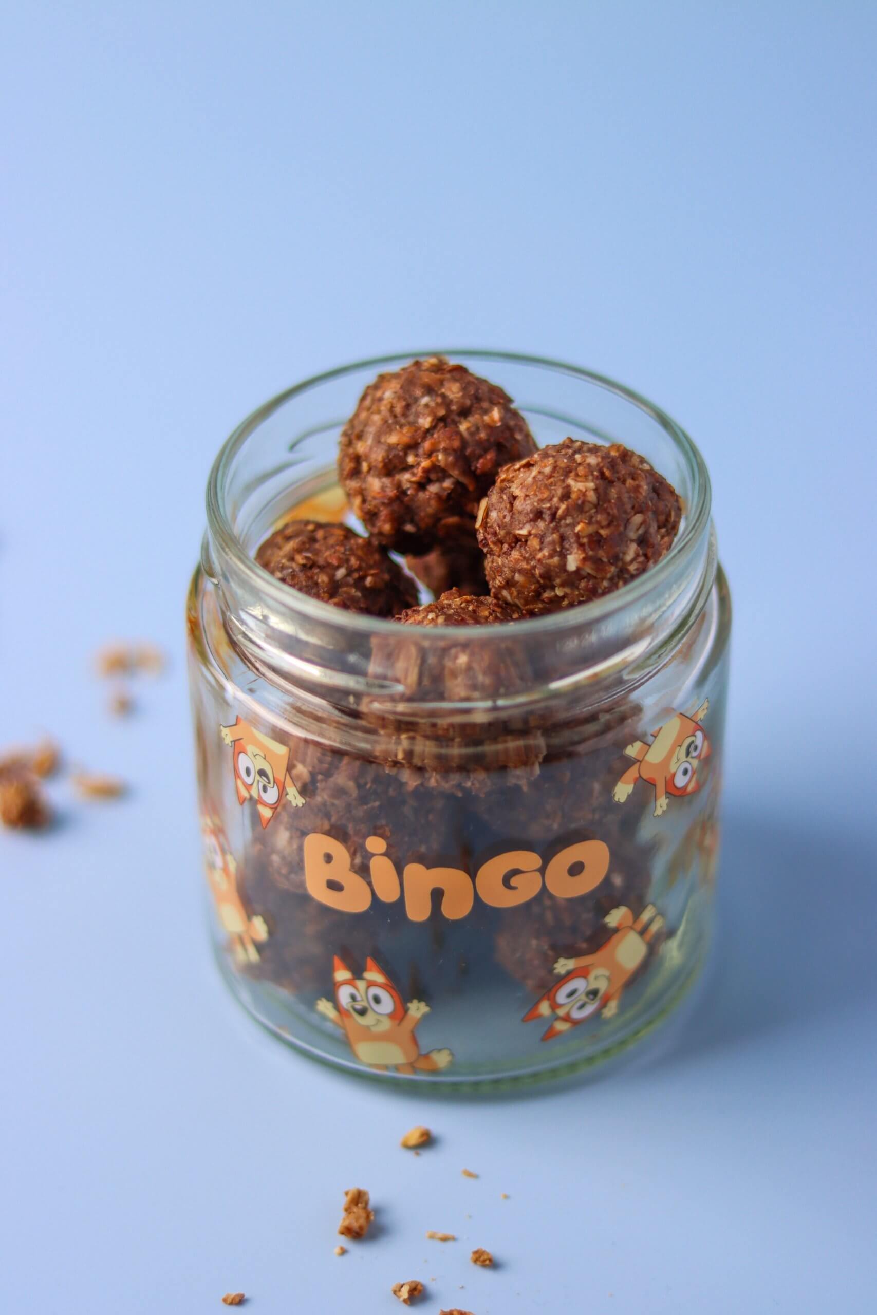 Die Schoko-Knusperkugeln sind nun bereit zum Genießen! Du kannst sie in einem luftdichten Behälter z.b das Bingo Overnight Oats Glas bis zu einer Woche im Kühlschrank aufbewahren.